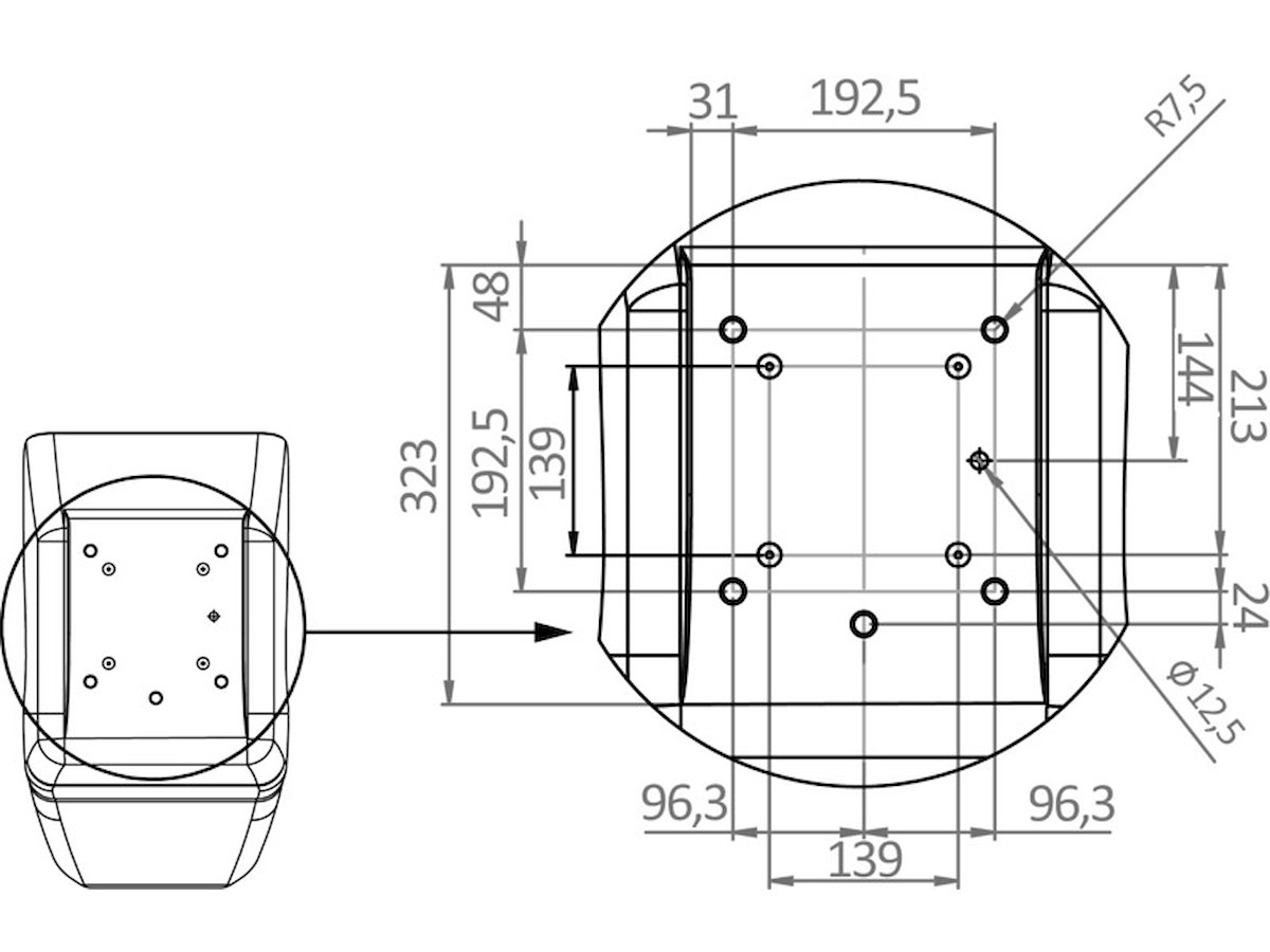 Fabbricata in polietilene rotazionale, completa di inserti in ottone, multipli sulla base, per poter essere applicata a varie colonne o slitta sedile.