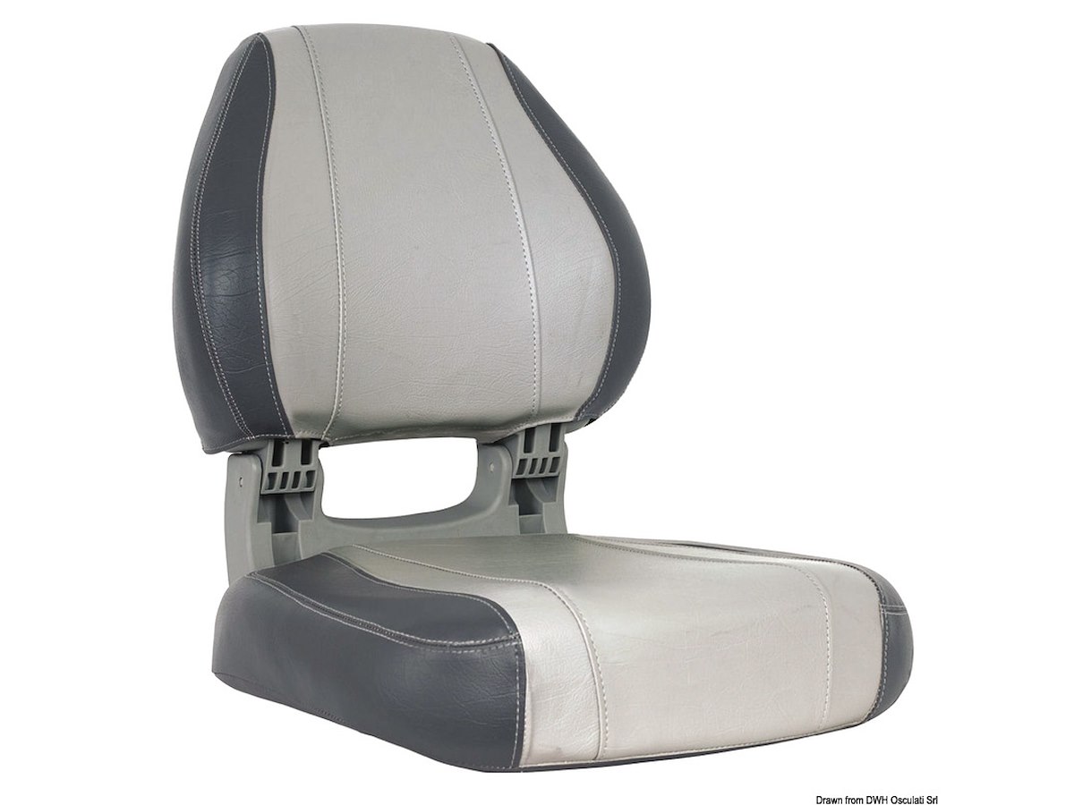 Schienale ribaltabile con blocco. Schiuma interna ad alta densità. Rivestimento UV resistente. Fori di fissaggio inferiori con interasse standard.