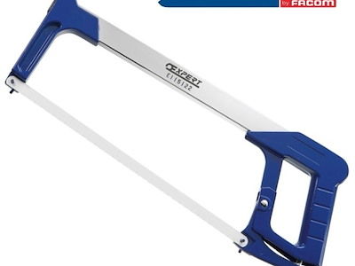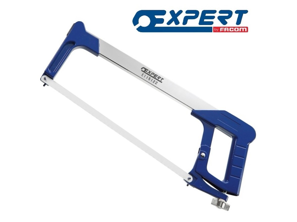 seghetto con corpo in acciaio cromato dotato di lama orientabile da 300mm e vite per la regolazione della tensione (fino a 100kg)