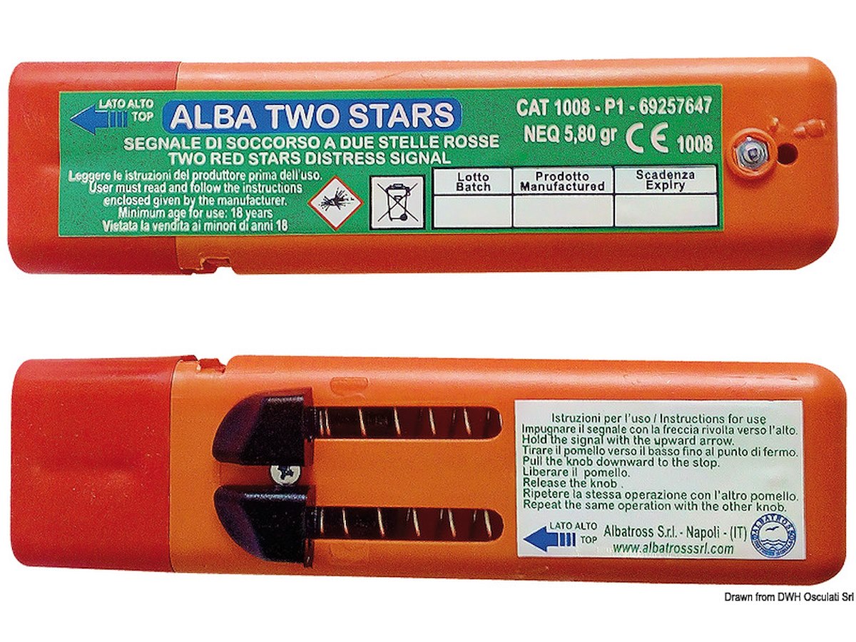 Segnale di soccorso diurno di tipo “Approvato Ministero dei Trasporti e della Navigazione”. Per uso su navi, scialuppe di salvataggio e zattere. Utile anche per sub, windsurfisti, escursionisti e soccorso alpino.