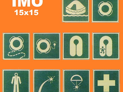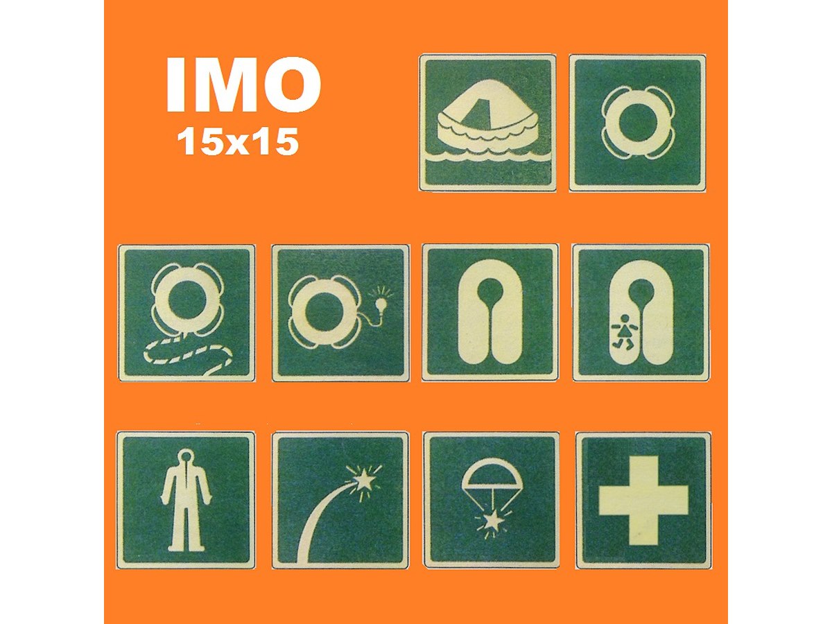 adesivi luminescenti con simbologia IMO, formato 15x15cm