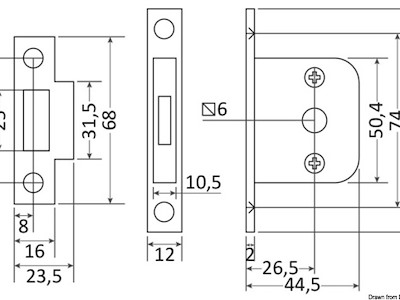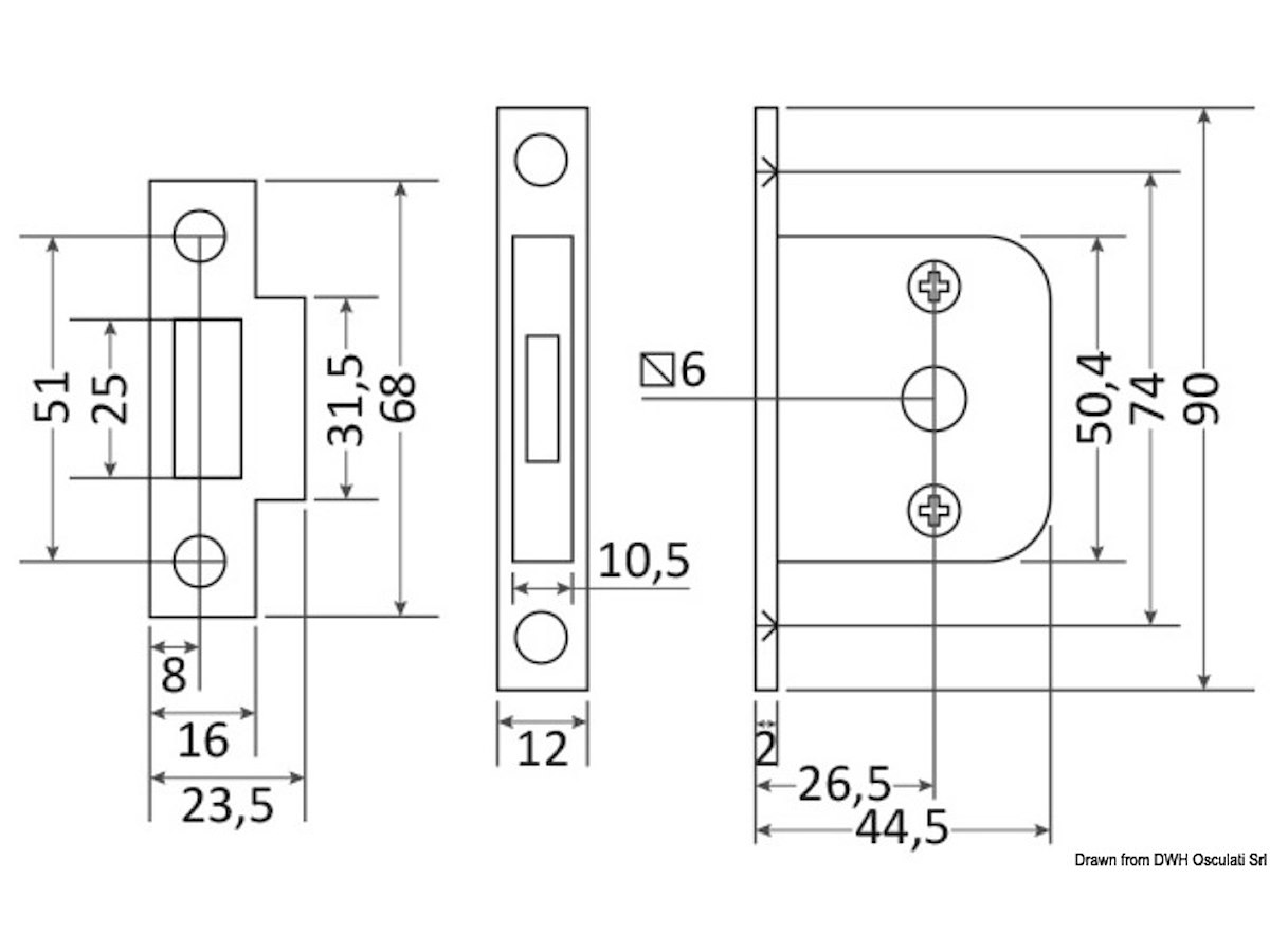 Dimensioni: 51x45x10,5 mm. Per porte spessore 16/38 mm.