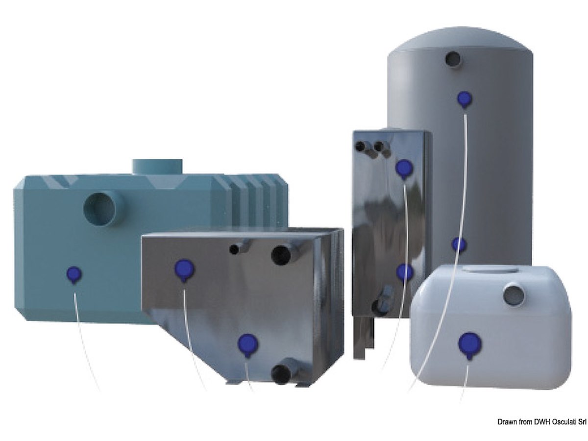 1 solo sensore è consigliato per segnalare 3/4 acque nere o riserva acqua/carburante.