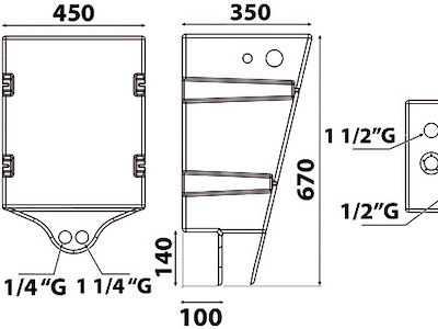 Progettato per essere svuotato per gravità , senza impiego di alcuna pompa. Completo di filettature femmina da 3/4" - 1" 1/2 per carico, 1" 1/4 per scarico, sfiato + flangia indicatore livello. Fabbricati secondo ISO 8099.