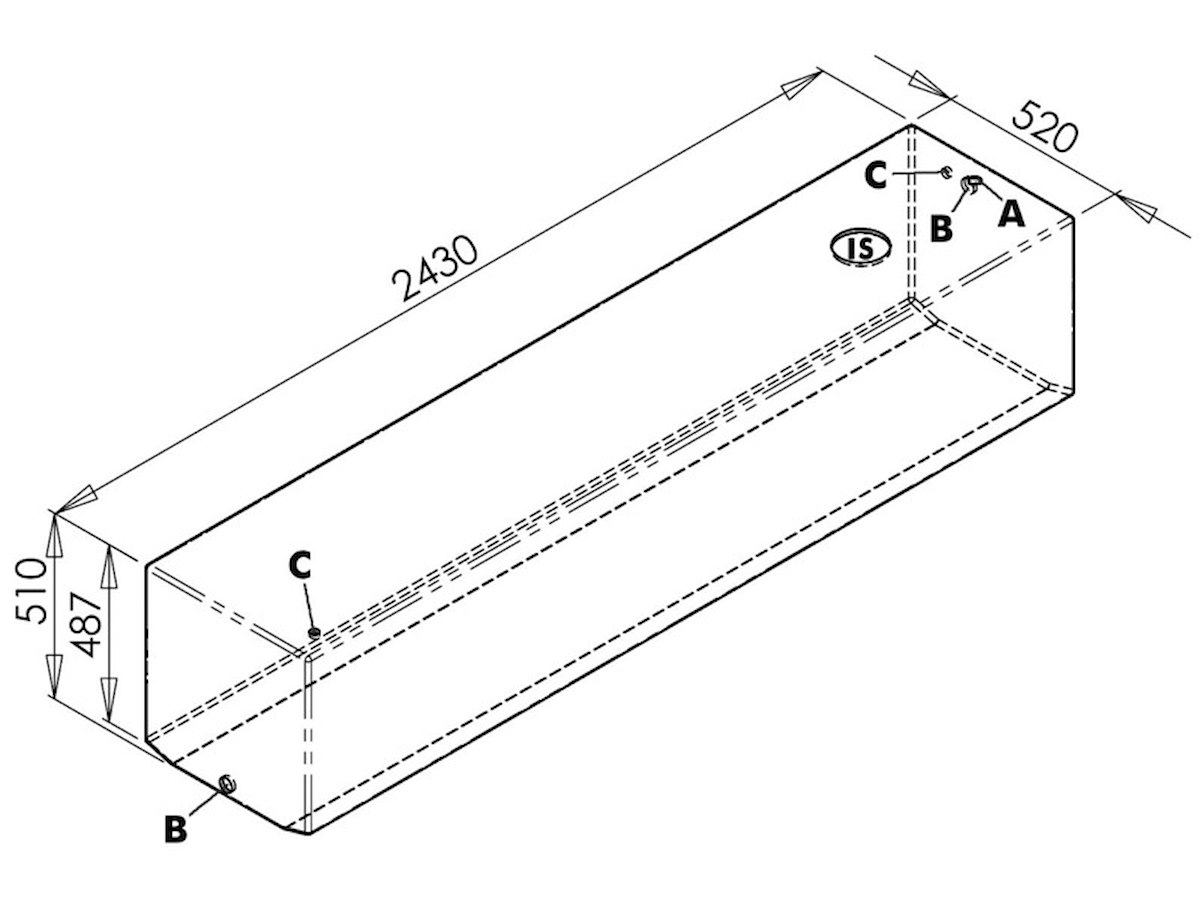 Capacità l: 600 Lunghezza x larghezza mm: 2430x520 Altezza mm: 510 Spessore standard mm +/- 5%*: 9,5