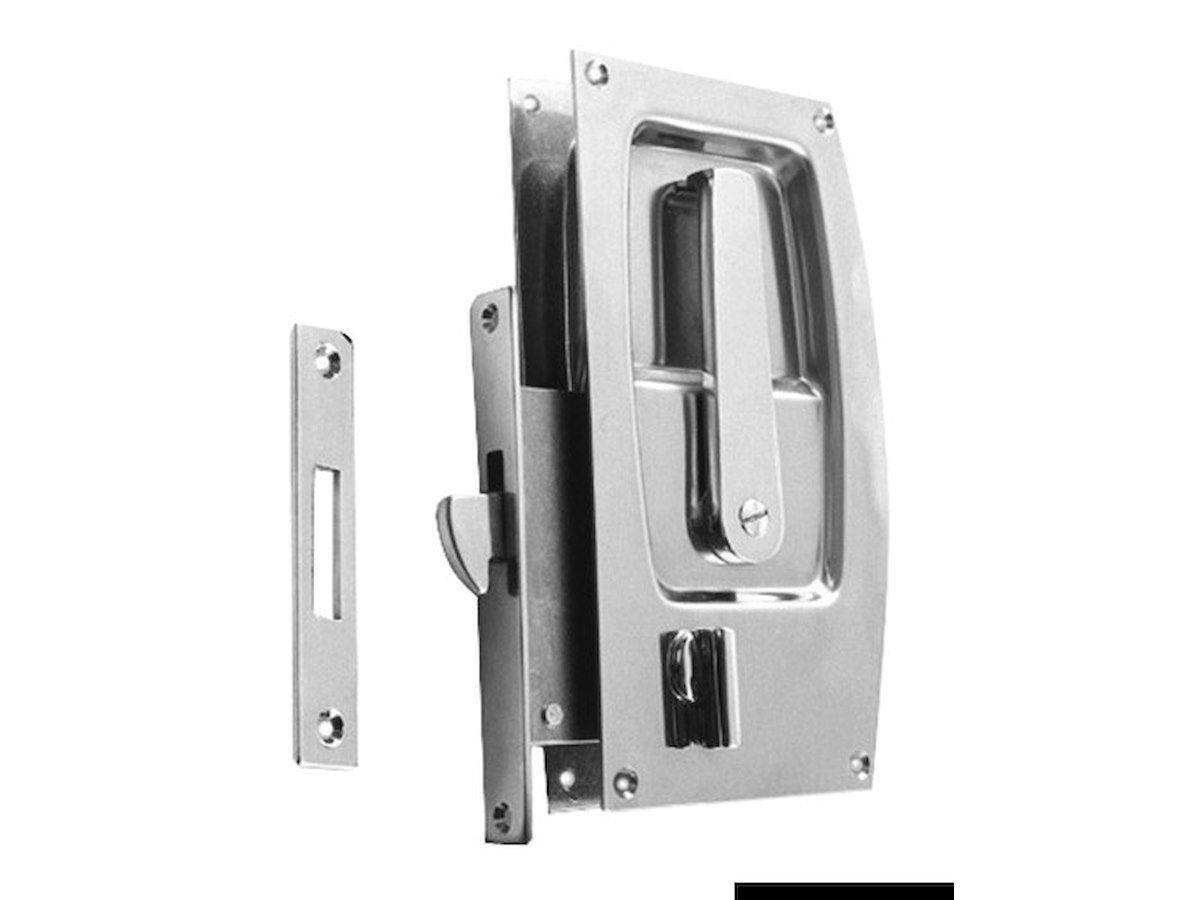In ottone cromato per porte scorrevoli con maniglia a filo, Adatte per porte con spessore minimo di 20 mm.