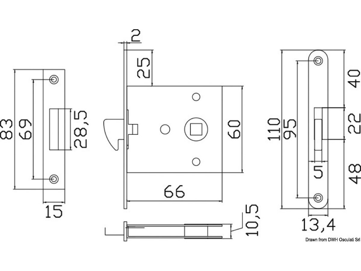 Serratura da incasso per porte scorrevoli