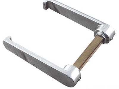 In acciaio inox. Completa di scontro, cilindro tipo Yale e maniglia piatta. La bassa profondità la rende molto adatta per porte con profili sottili.