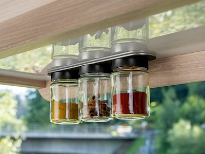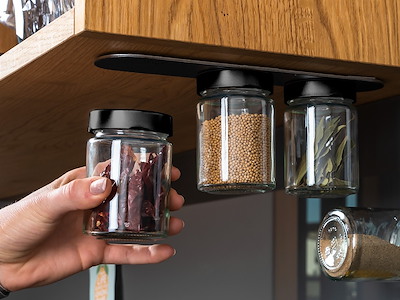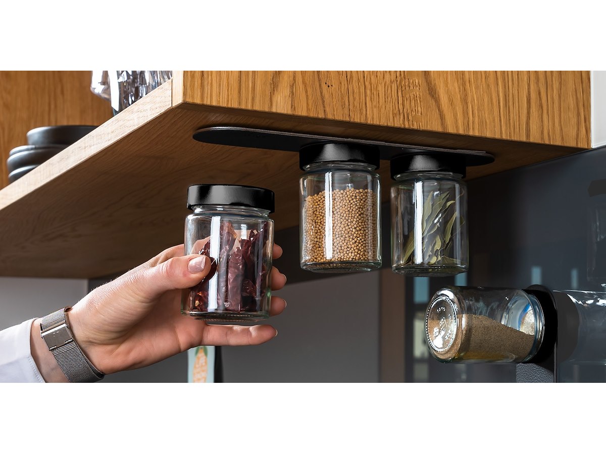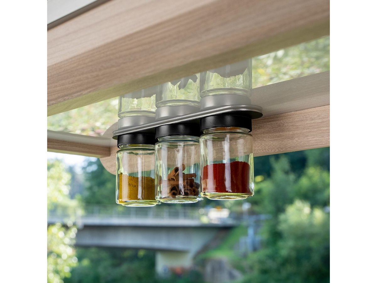 set di 3 portaspezie in vetro magnetici completi di 1 striscia con anima metallica