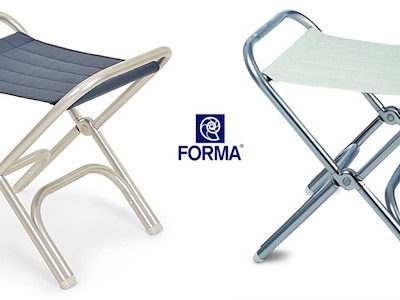 eleganti sgabelli costruiti in lega leggera anodizzata con snodi anticorodal, sedile in vinile Nautolex marino facilmente sostituibile, dimensioni: 56x42x43cm viteria in acciaio inox