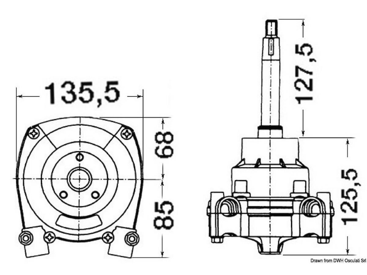 Per scafi fino a 9/10 m e velocità fino 50 MPH. Questo sistema permette di lasciare il volante senza che la rotazione dell’elica faccia virare lo scafo.