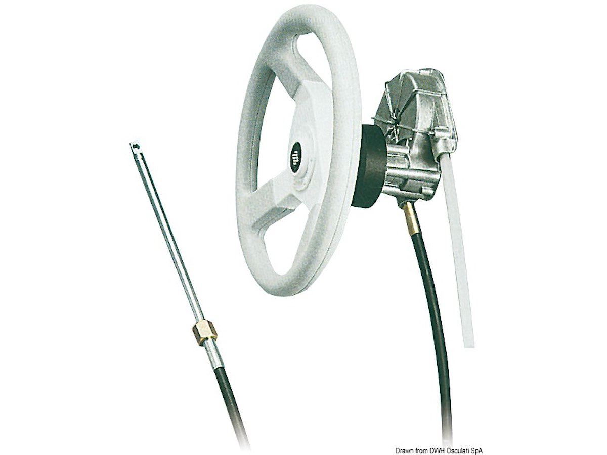 Per motori fuoribordo, entrobordo, entrofuoribordo, fino a 9/10 m e velocità massima 50 MPH, giri volante 3, raggio minimo curvatura 200 mm, corsa 228 mm.