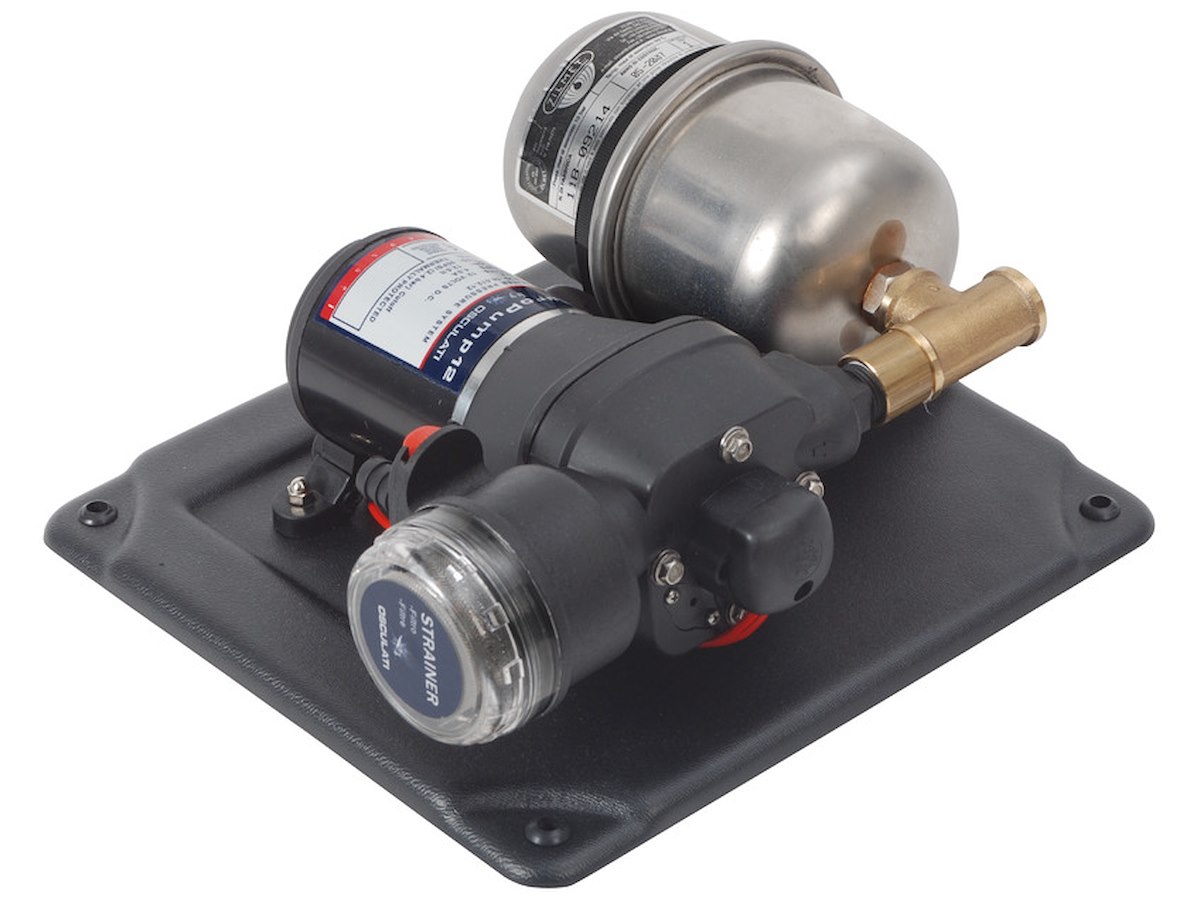Il sistema è composto da un'autoclave a 4 valvole con collegato un vaso d'espansione in acciaio inox da 1 litro e filtro di aspirazione. Base in robusto ABS 280 x 260 mm. Fissaggio tramite 4 gommini antivibranti. Raccordi di entrata da 1/2" o portagomma 14 mm. Uscita 1/2" femmina. Protezione contro inversione polarità. Cuscinetti interni in acciaio inox.