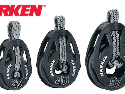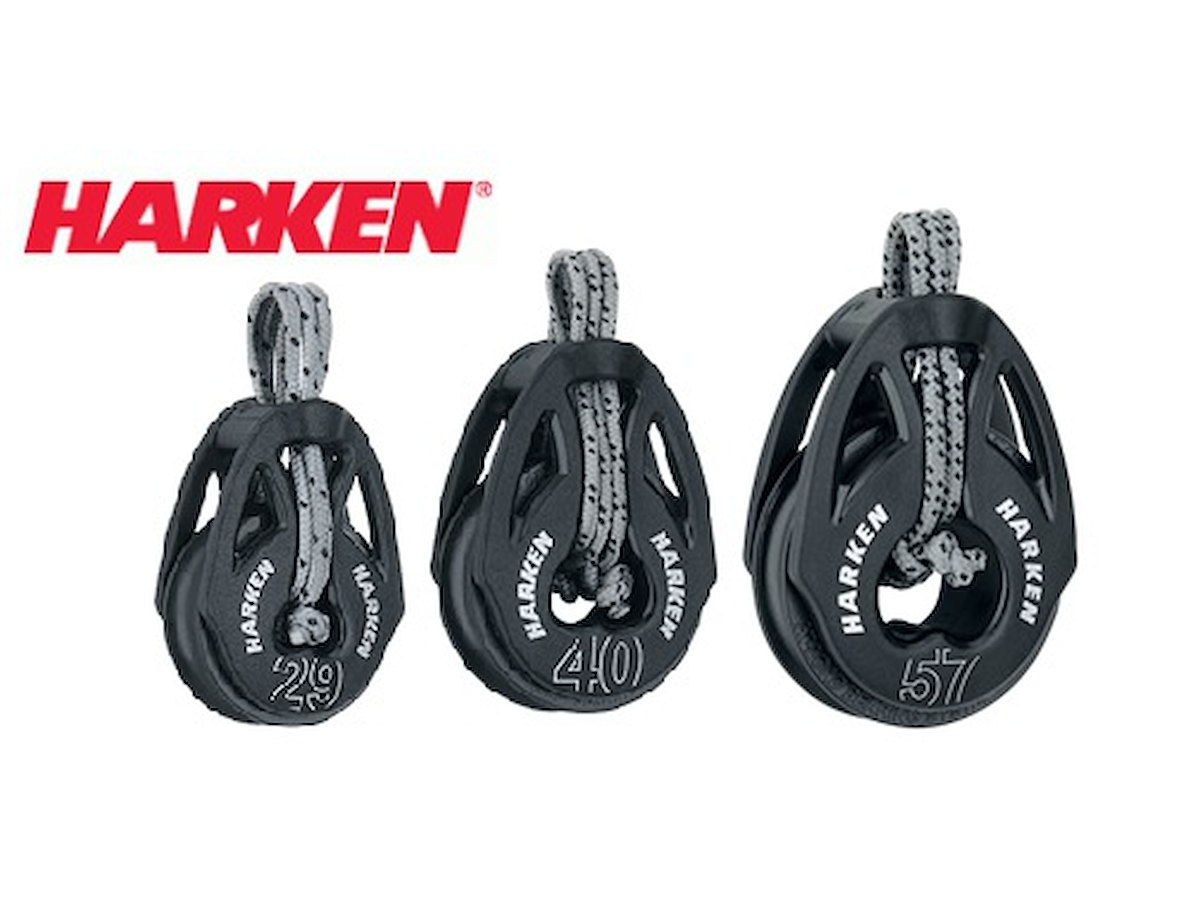 bozzello singolo brevettato Harken, con fissaggio in tessile soft, puleggia in composito ad alta efficienza con sfere in Delrin, ultraleggeri