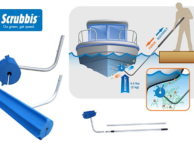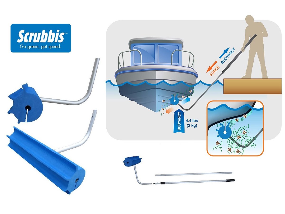 spazzolone per pulizia sottomarina della carena, lavoro facilitato dalla spinta al galleggiamento, completo di manico telescopico