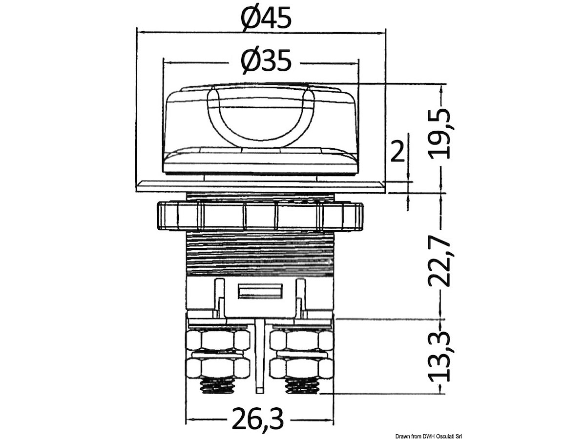 Capacità max A - in continuo: 100 Capacità max A - intermittente: 150 Ø collo mm: 26 Ø flangia mm: 45 Collo utile mm: 11 Ø terminali mm: 6