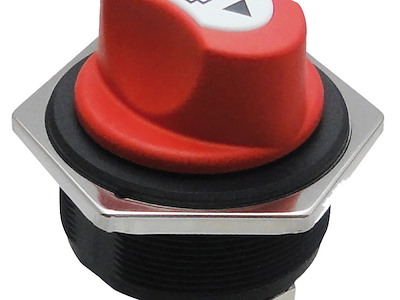 Modello supercompatto per montaggi su cruscotto o paratia. Posizioni: OFF-ON-OUT che permette di sfilare il pomello come antifurto.