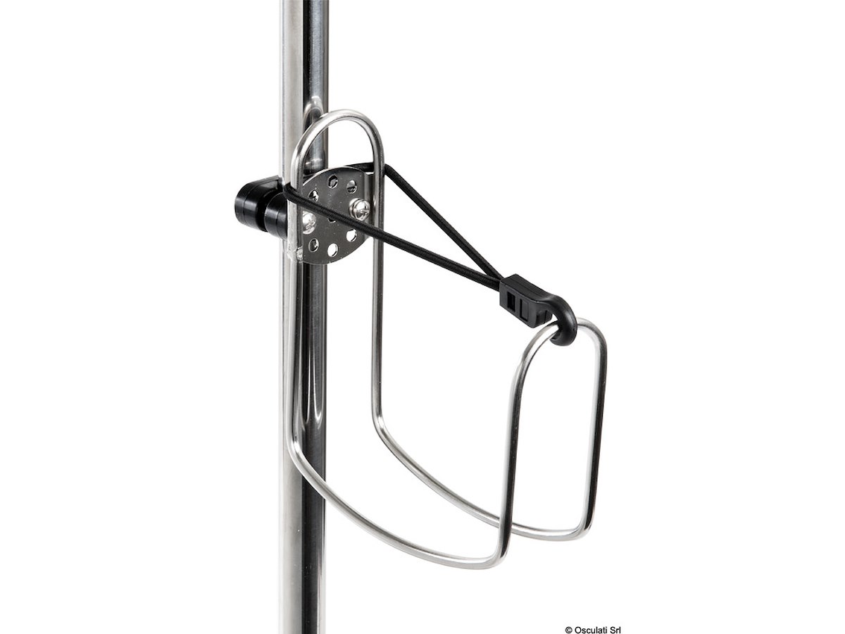 Per salvagente anulari o a ferro di cavallo. Modello universale . Si può installare su piano, su paratia, oppure su tubi inox del Ø di 22/25 mm diritti o inclinati, tramite un’apposita staffa in nylon ruotante, completo di elastico di fermo . Versione semplice o completa di supporto per boetta luminosa Art. 30.584.01.