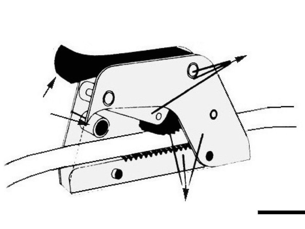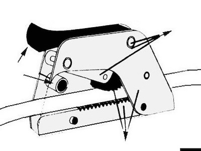 Dispositivo brevettato che permette sia di "cazzare” che di "lascare” la scotta sotto sforzo. Carcassa in alluminio anodizzato, cammes ed assi in acciaio inox, leve e rulli di scorrimento in delrin.