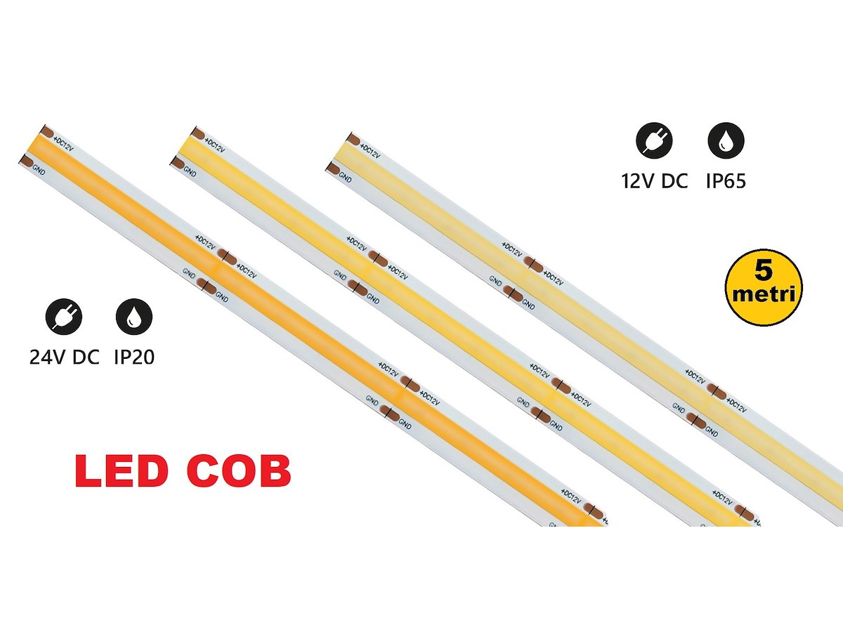 STRISCE LED C.O.B. WHITE 12 O 24V DIMMERABILI LUCE 3000K VOLT 24V