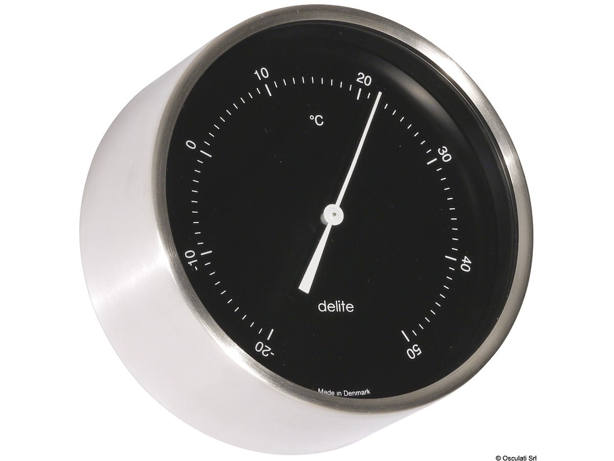 Variante: In acciaio inox cromato quadrante nero Strumento: Termometro Quadrante Ø mm: 100 Sporgenza mm: 44