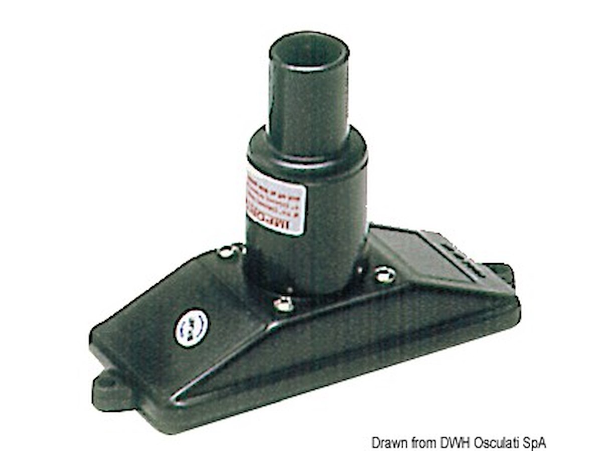 Da 147x56x104 mm, per installazione con discesa in verticale del tubo. Adattabile a tutte le pompe a mano con imboccatura da 25/38 mm, completa di valvola di fondo di ritegno.
