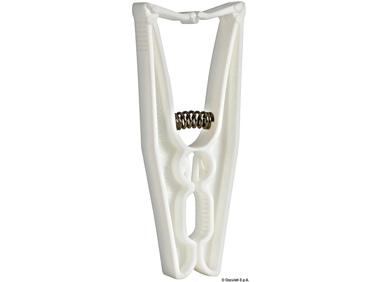 Fabbricate in plastica, tramite ingegnoso sistema di sicurezza, permettono di evitare l'apertura della molletta anche nelle condizioni più gravose. Molla interna in acciaio inox.