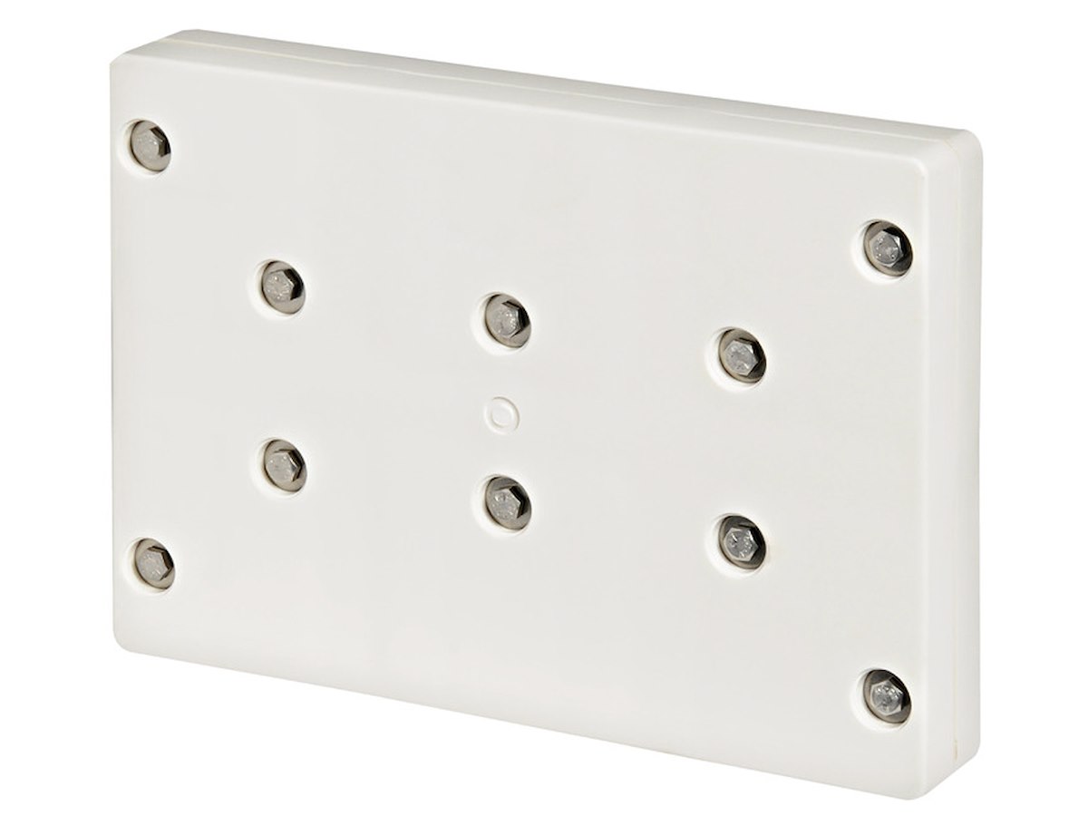 Versione: Solo tavoletta in plastica, completa di dieci bulloni e dadi per il fissaggio, predisposizione foratura per tubi Ø 22/25 mm Per motori fino: 12 HP o 35 kg Tavoletta mm: 289x200