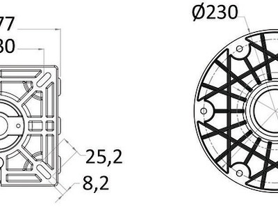 Estraibile dalla base in alluminio anodizzato Ø 228 mm. Tubi alluminio anodizzato. Testa in nylon / fibra di vetro con foratura universale.