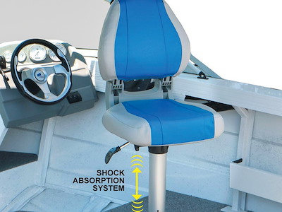 Regolabile in altezza tramite molla a gas. Dotato di sistema di ammortizzatore interno (Shock Absorber) per assorbire l'impatto della barca con le onde.