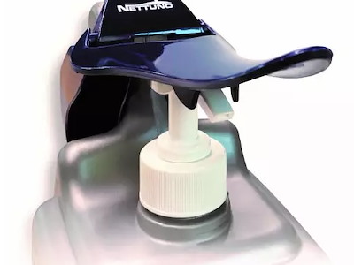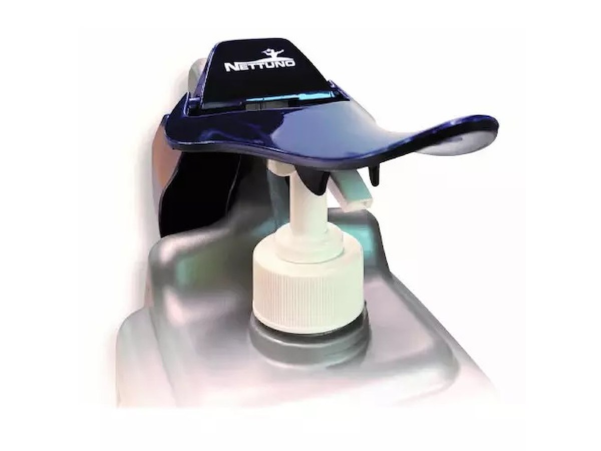 Supporto a parete con leva a gomito per dispenser saponi professionali T-Box. Utilizzabile con taniche da 3 e 5 litri T-Box