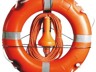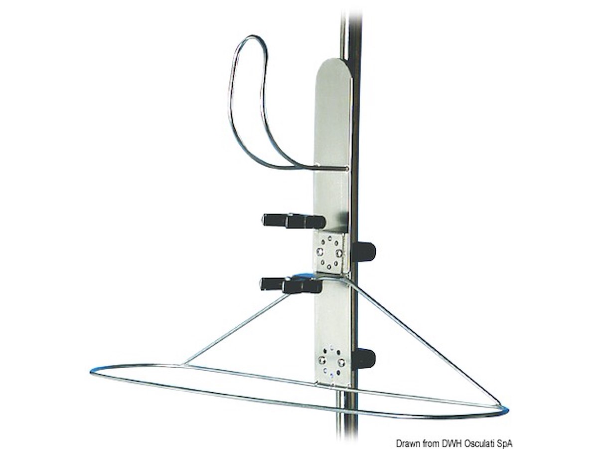 Fabbricato in acciaio inox lucidato. Montaggio a parete oppure, con morsetti in dotazione, sul pulpito (tubi 20/22 mm). Può contenere salvagente + boetta 30.583.00 + cima 22.408.06.