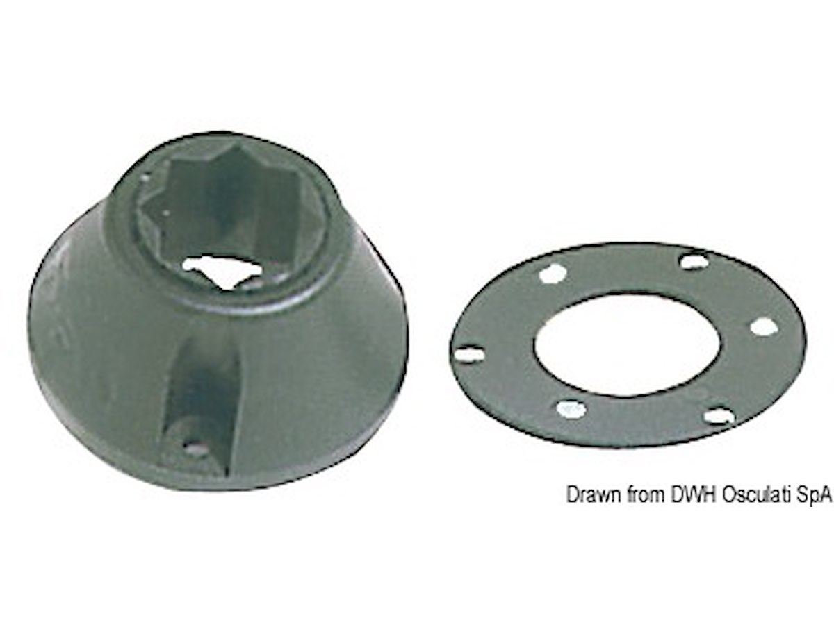 In nylon nero per maniglie winch. Si fissa con tre viti. Si usa al posto delle tasche in PVC. Ø base mm: 52 Sporgenza mm: 26