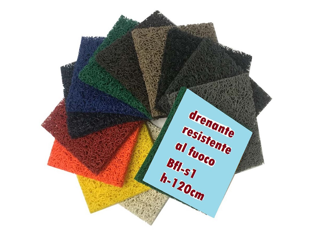 tappeto in PVC H-120cm drenante in quanto senza fondo, reazione al fuoco Bfl-s1 (EN1350-1) prezzo al metro lineare