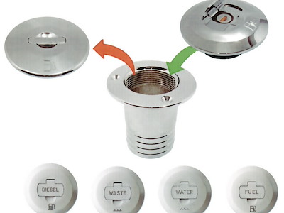 • Tappo di rifornimento in ottone cromato - Collo Ø mm: 50