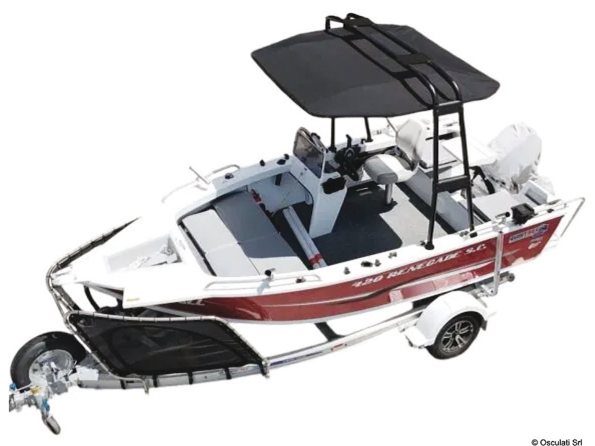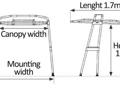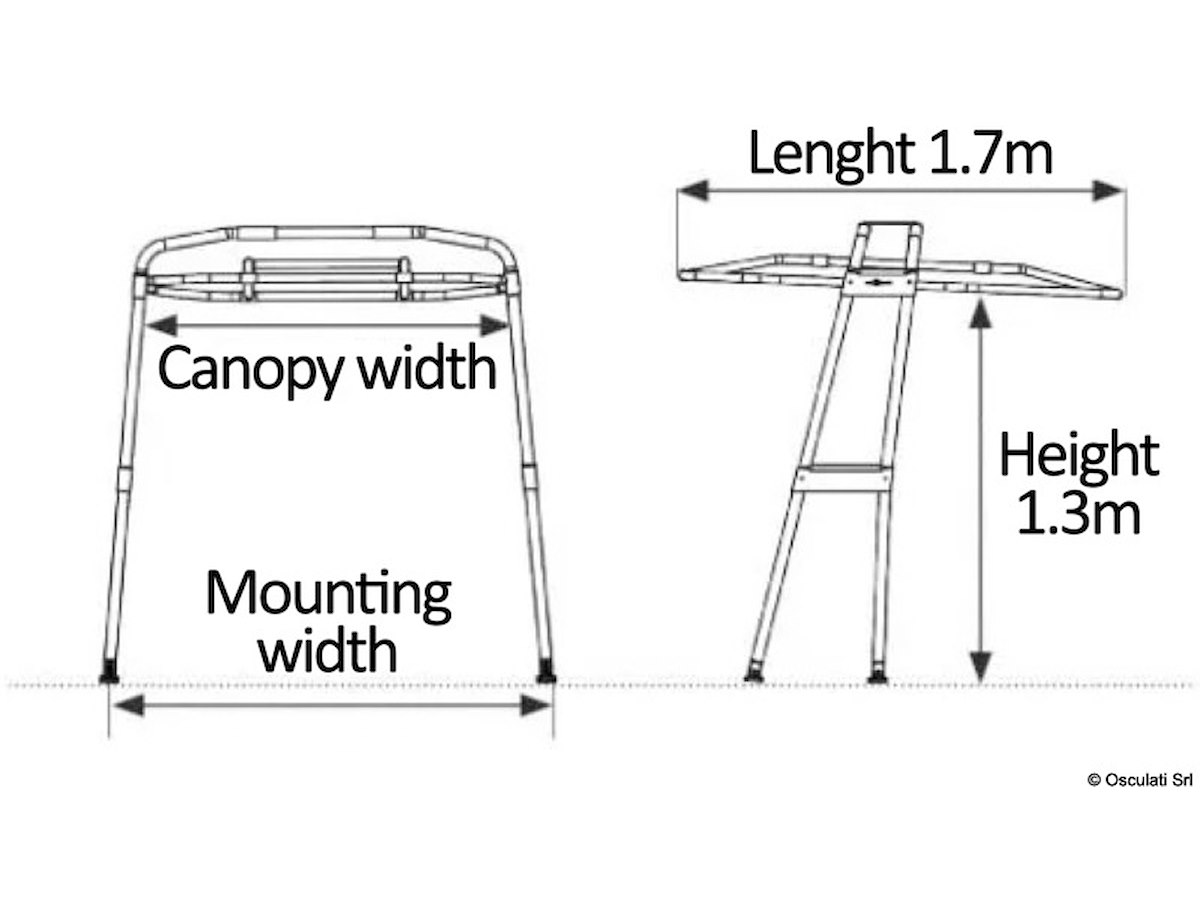 Tessuto ATLAS in poliestere nero 400 gr/m2, impermeabile ed UV resistente. Viteria in acciaio inox AISI 316.