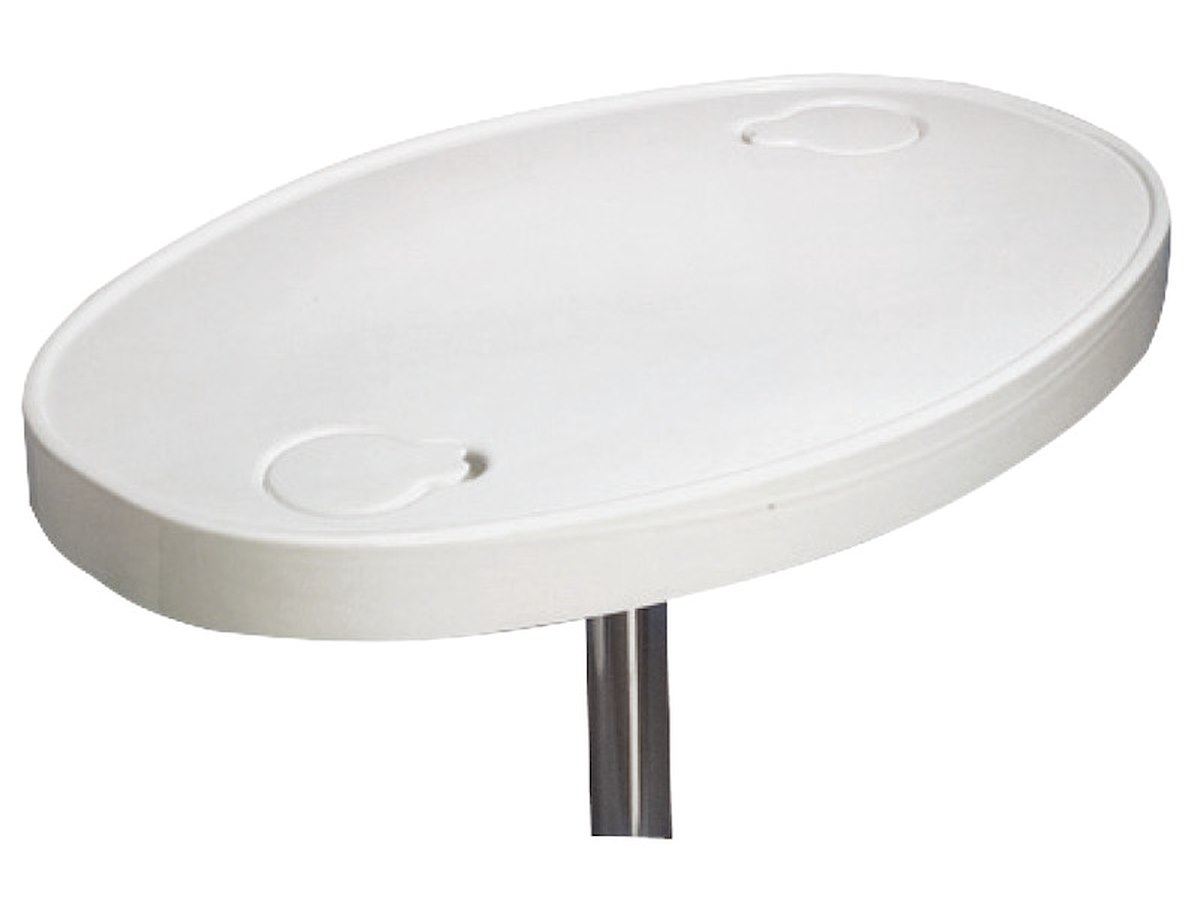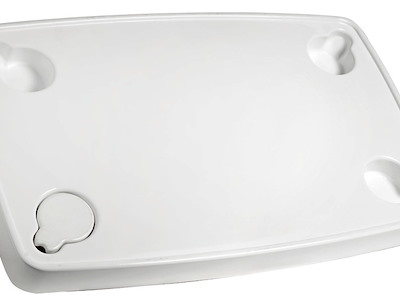 Provvisto di alloggiamenti per tazze, bicchieri, bottiglie che, con appositi tappi in dotazione al tavolo, possono essere livellati per avere una superficie perfettamente liscia.