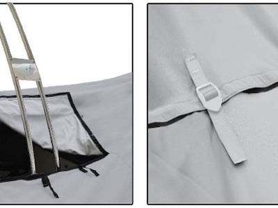 Fissaggio con fettucce resistenti. Dotato di due Cam Cleat per tendere il telone con semplicità.