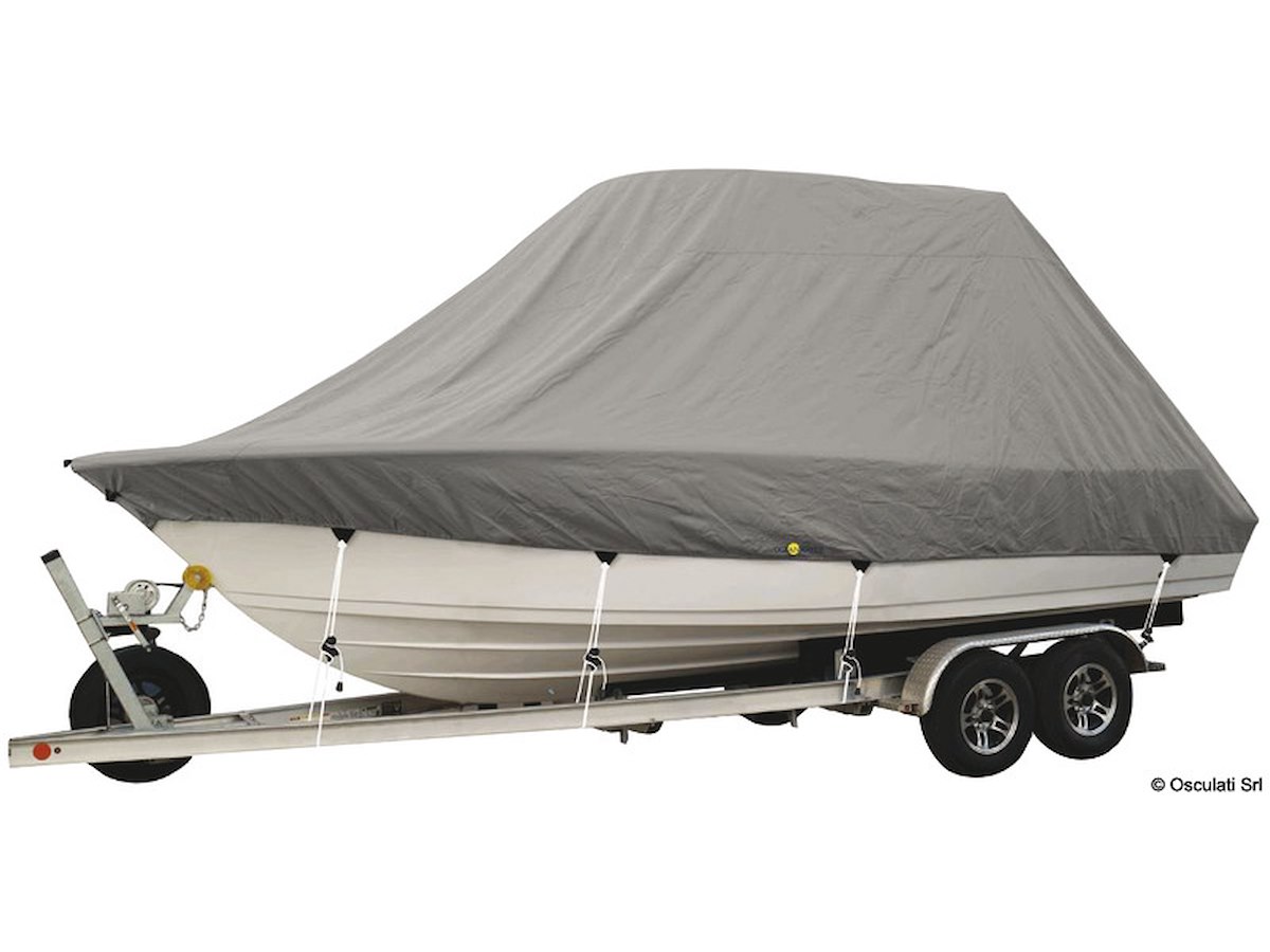 Fabbricati in tessuto ATLAS 240 g/m 2 impermeabile, traspirante e UV resistente. Doppie cuciture per maggior resistenza. Raccomandati per traino su carrello a bassa velocità, max 60 Km/h. Se utilizzati su imbarcazione con coppia di motori acquistare una taglia superiore.