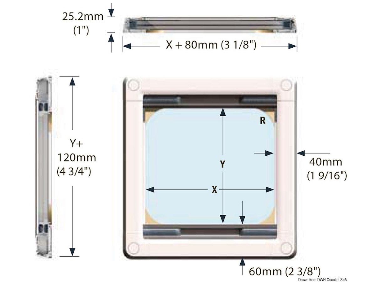 Sistema elegante e di facile applicazione per boccaporti rettangolari e rotondi, installato sulla superficie del rivestimento interno della cabina o adatto anche per essere nascosto nel rivestimento interno.