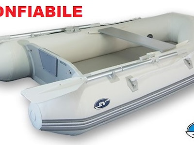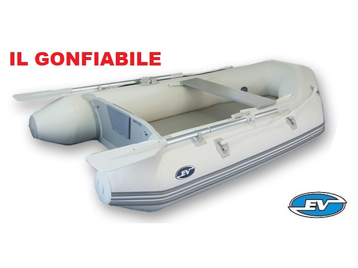 tender Eurovinil con pagliolo gonfiabile ad alta rigidità, estremamente stabile, veloce e confortevole. Rispetto al classico pagliolato a stecche, il pagliolato gonfiabile conferisce una maggiore rigidità alla struttura del battello migliorandone le doti di navigazione