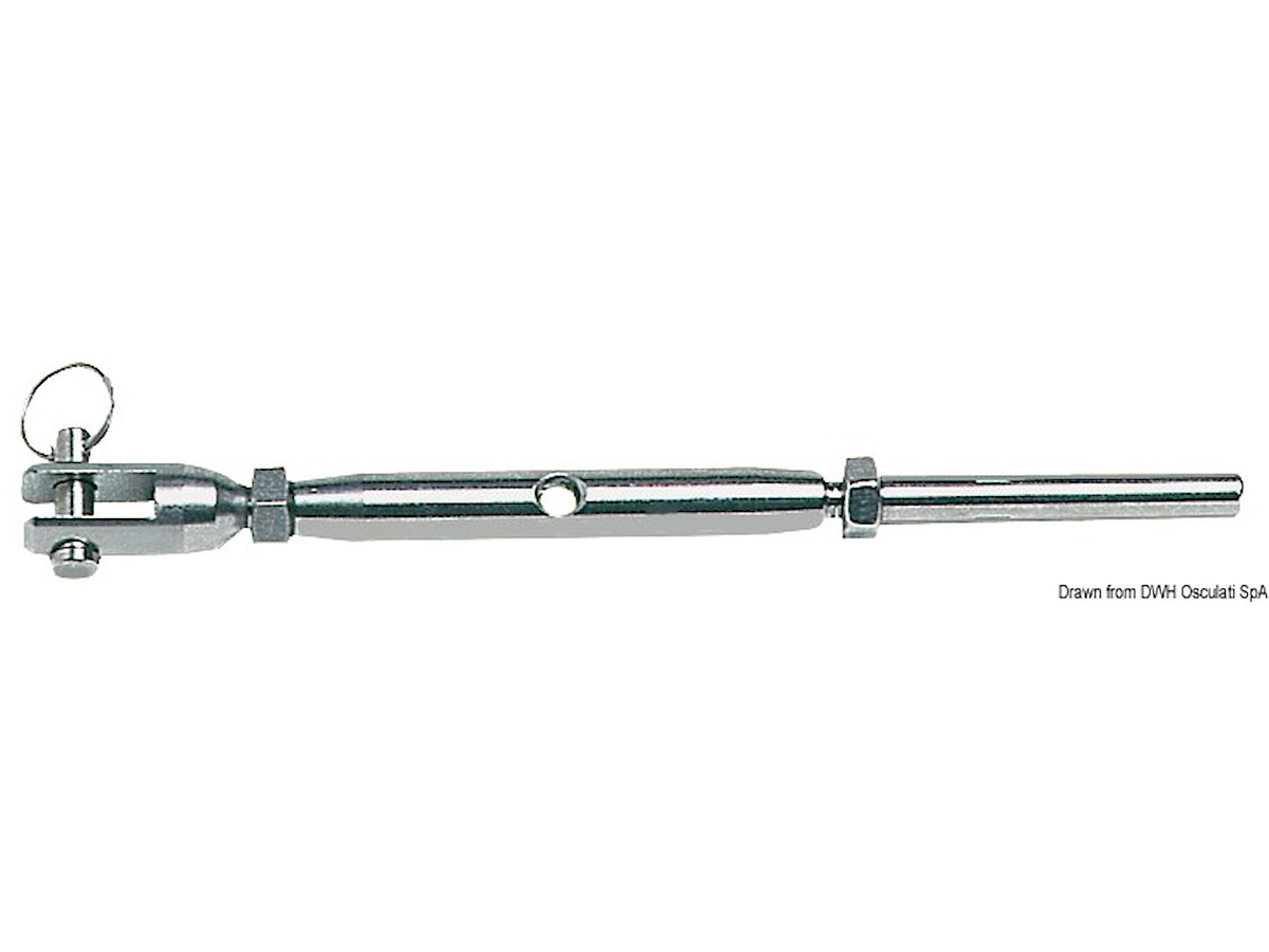 Tenditore tornito dalla barra con terminale a pressare su cavo inox