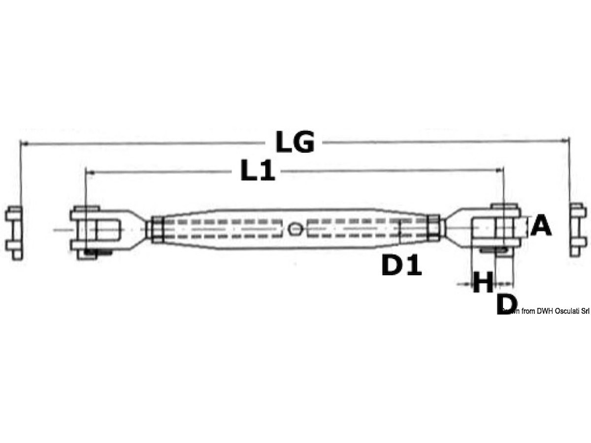 Filetto D1 MA: 4 L1 mm: 115 A mm: 4,5 D mm: 4 H mm: 8 LG mm: 175 Carico di lavoro kg: 410