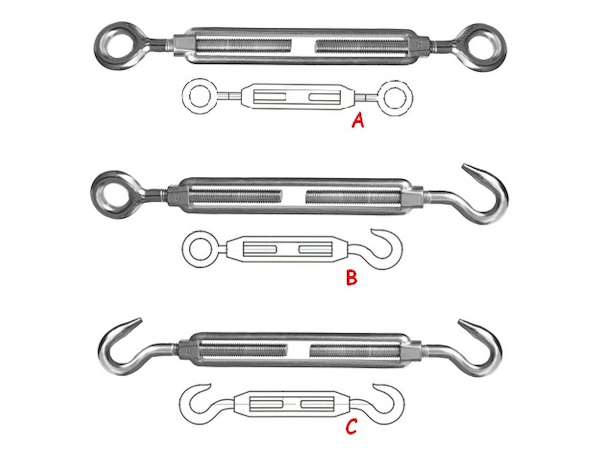 tenditori alleggeriti a cannula aperta, realizzati in acciaio inox aisi 316