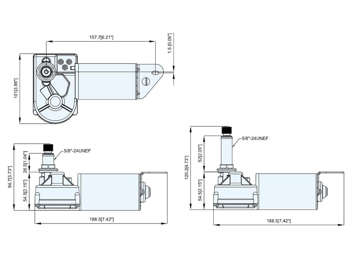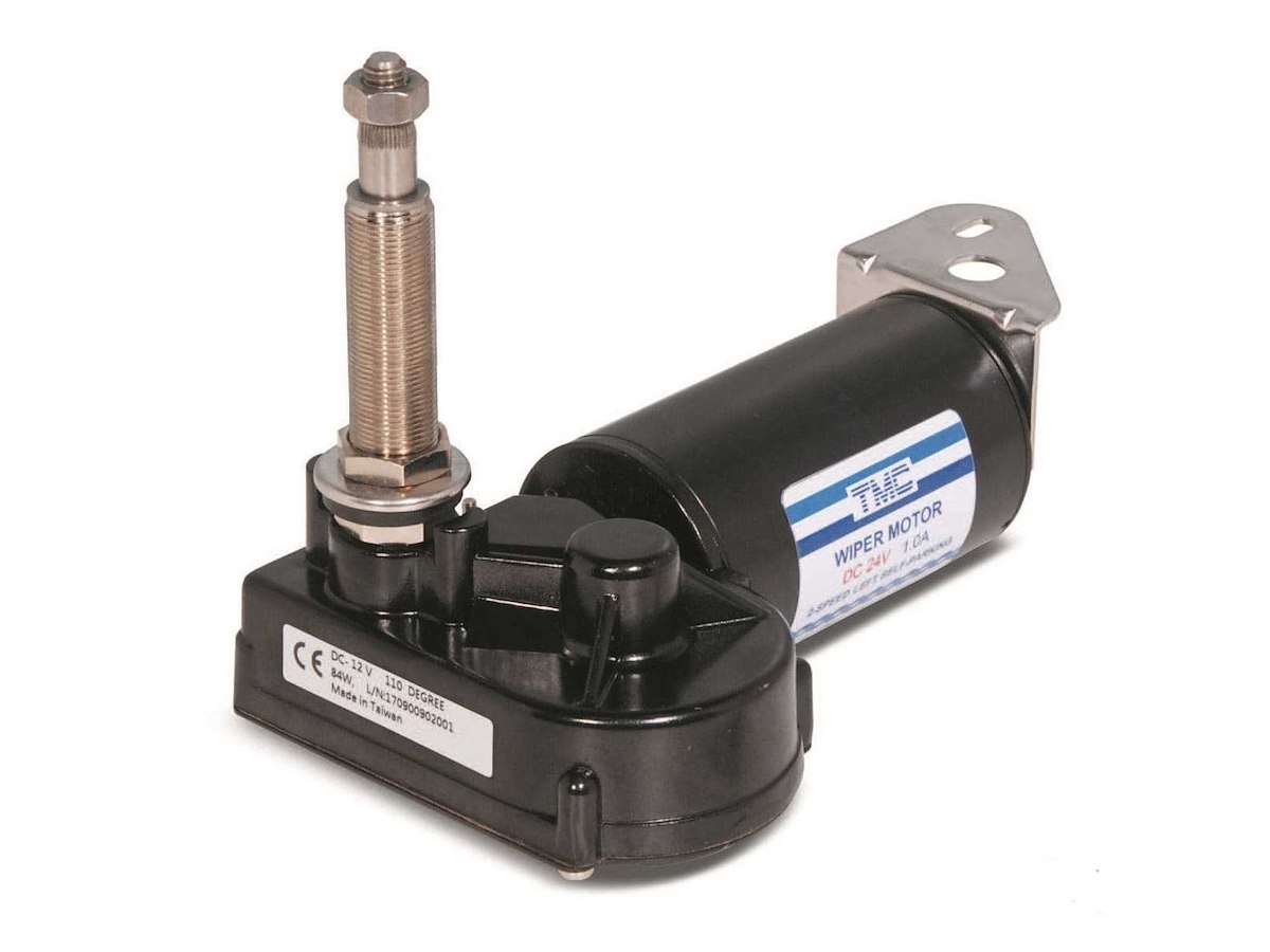 tergicristallo heavy duty con corpo verniciato in nero, realizzato in materiale antiruggine, angolo regolabile 83°-100°-110°-120° modello a 2 velocità, coppia massima 100 kgf/cm