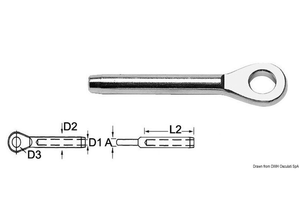 Per applicazione all'estremità dei cavi in acciaio, per la realizzazione di sartie, stralli...