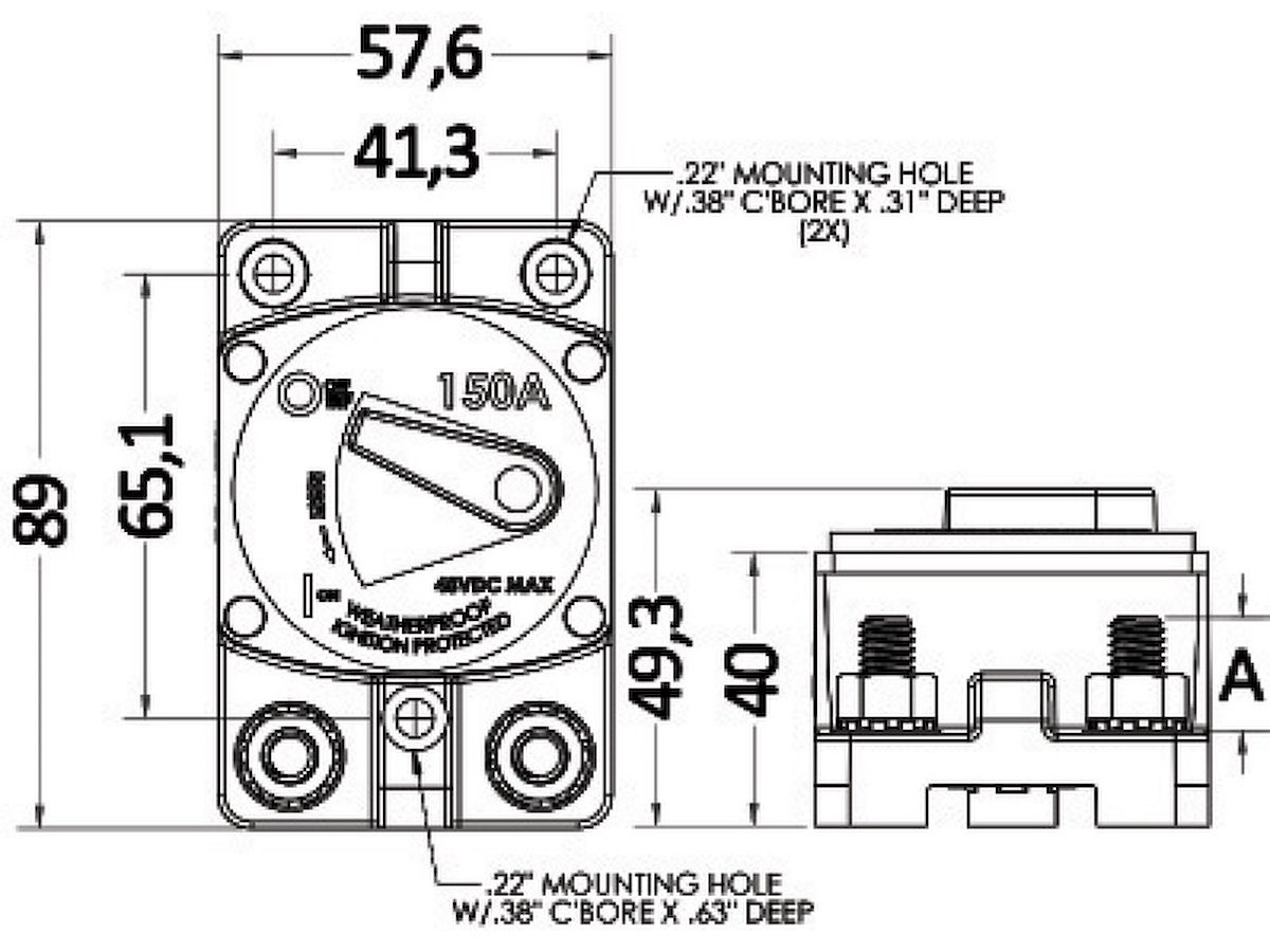 Versione maggiorata, terminali elettrici da 5/16” (invece che da 1/4”) per facilitare il collegamento dei cavi. Il modello da incasso richiede un semplice foro circolare per l’installazione. IP66 Waterproof. Da 100 A a 200 A può anche essere usata come staccabatteria generale.