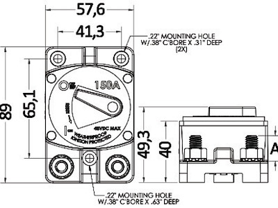 Riarmabili e sganciabili tramite apposita levetta, svolgono contemporaneamente funzioni di fusibile ed interruttore. Fabbricati in accordo con norme USA SAEJ1171 e CE 28846 “Vapor Proof”, capacità 3000 cicli d’intervento. Voltaggio ammesso: max 48 V, Versione maggiorata, terminali elettrici da 5/16” (invece che da 1/4”) per facilitare il collegamento dei cavi. Il modello da incasso richiede un semplice foro circolare per l’installazione. IP66 Waterproof. Da 100 A a 200 A può anche essere usata come staccabatteria generale . Capacità massimo voltaggio: 5000A 14VDC; 3000A 28VDC; 1500A 48VDC. Temperatura di utilizzo: -40C° / 85C°.