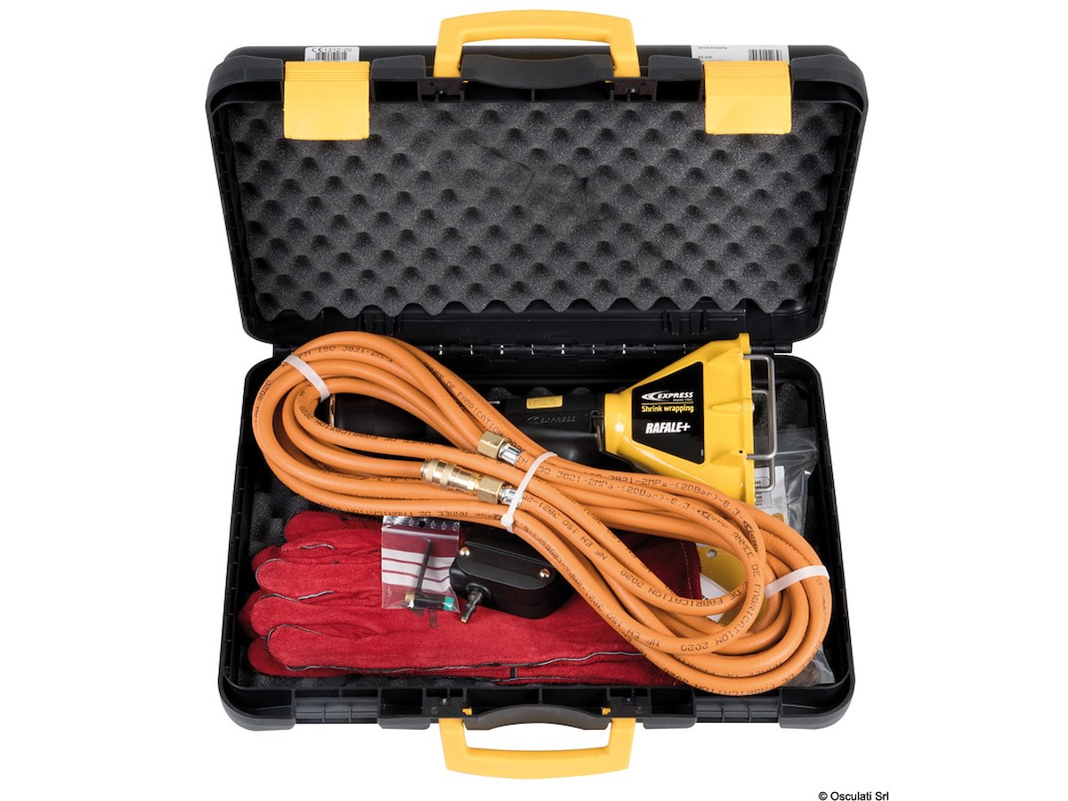 Termopistola a gas propano da utilizzare per la termoretrazione del polietilene. Con un peso di 1,170 kg, la sua ergonomicità e silenziosità (88 dB a 1 m - 85 dB), Rafale Black Edition è stata progettata per ridurre al minimo l'affaticamento dell'utente anche dopo molte ore di utilizzo. Ha un consumo aria da 48 a 72,2 m3/h ed un flusso da 3,2 a 4,8 kg/h. Il diametro dell'iniettore è di 1,3 mm e la testa può ruotare di 360° per l’utilizzo in ogni posizione. Il bruciatore in alluminio con doppia protezione assicura la massima sicurezza rimanendo sempre tiepido indipendentemente dalla durata e dall’intensità di utilizzo. Possibilità di regolazione di potenza da 44 a 66 kW/h. Fornita con valigetta e completa di: 8 m di tubo di gomma NF EN 559, 1 manuale di istruzioni, 1 paio di guanti, 1 Riflettore di calore. Marcatura CE N° 4450.
