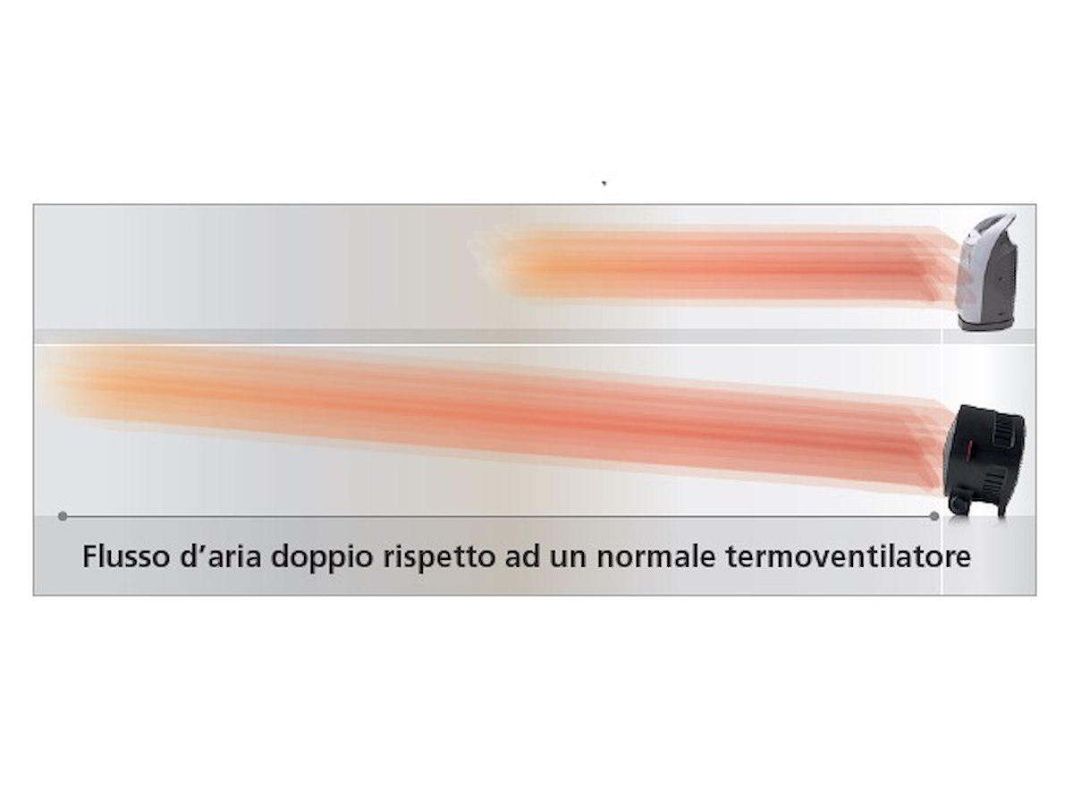 potente termoventilatore con termostato ambiente, 2 intensità di calore e dispositivo di sicurezza antiribaltamento con spegnimento immediato, potente e silenzioso flusso d'aria doppio rispetto allo standard